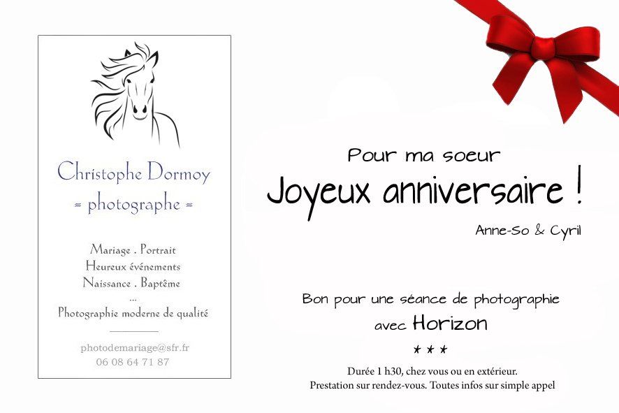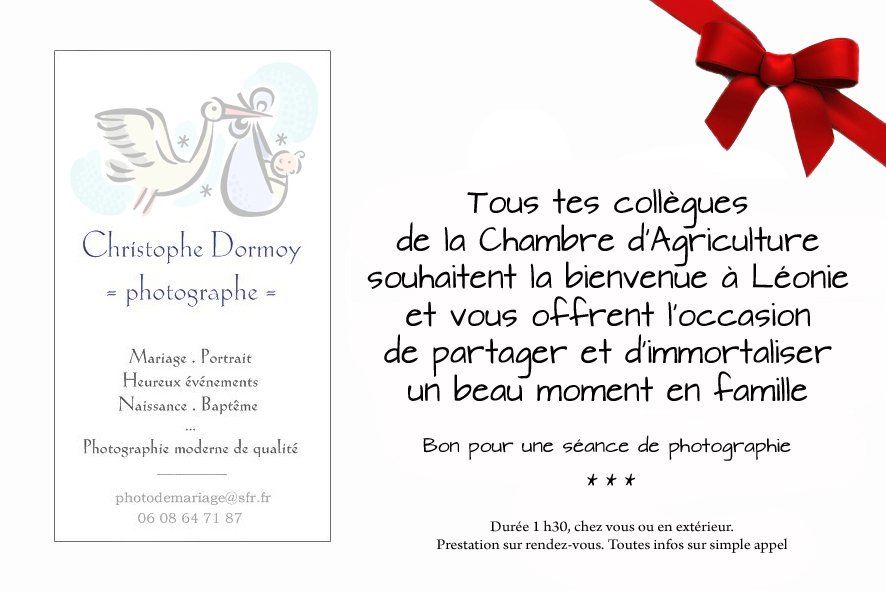 Une seule carte qui indique qu'il y a une séance avant et après l'arrivée de bébé.